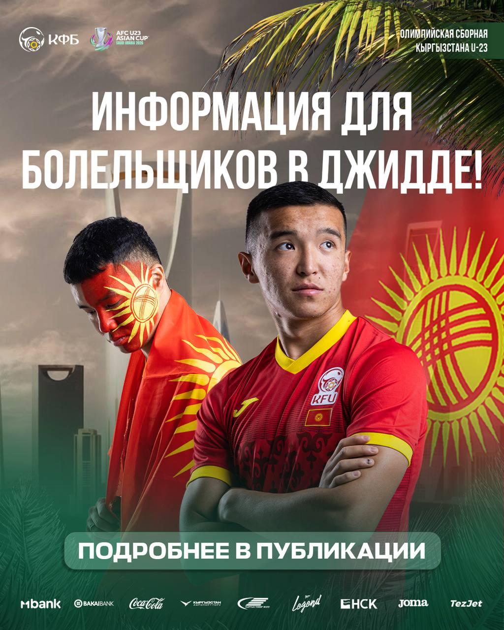 Уважаемые соотечественники в Саудовской Аравии! 6 января Олимпийская сборная Кыргызстана U-23 по футболу стартует на Кубке Азии 2026, который состоится в городе Джидда.