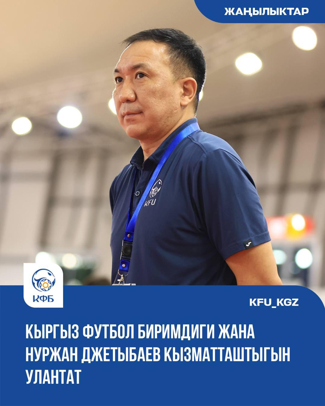 Кыргызский футбольный союз и отечественный специалист Нуржан Алымкулович Джетыбаев подписали соглашение о продолжении сотрудничества. Он продолжит работу в качестве главного тренера национальной сборной Кыргызской Республики по футзалу, а также директора по развитию футзала в стране.