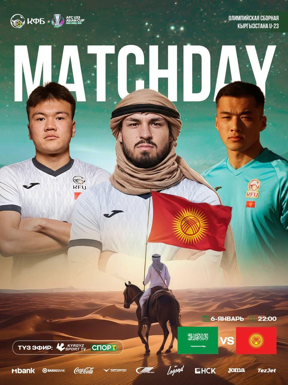 Сегодня, 6 января, в городе Джидда (Саудовская Аравия) стартует финальный этап Кубка Азии U-23. Сборная Кыргызстана проведёт свой первый матч против хозяев турнира — сборной Саудовской Аравии. Игра пройдёт на стадионе имени Абдуллы Аль-Файсала в Джидде.