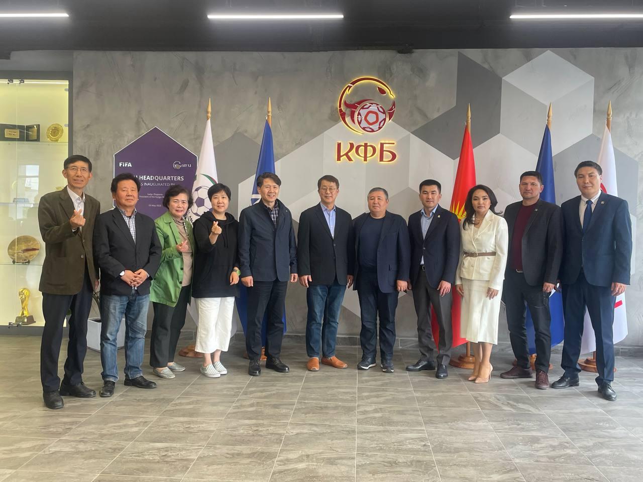 26 апреля в офисе Кыргызского футбольного союза состоялась встреча генерального секретаря КФБ Медербека Сыдыкова, вице-президента КФБ Канатбека Абдыкадырова, технического директора КФБ Анарбека Ормомбекова и исполнительного директора Кыргызской Профессиональной футбольной Лиги Каната Асенова с представителями южнокорейского футбольного клуба «Сувон».